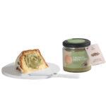 La confezione contiene: la colomba, un vasetto di crema di pistacchio e uno spalmino.